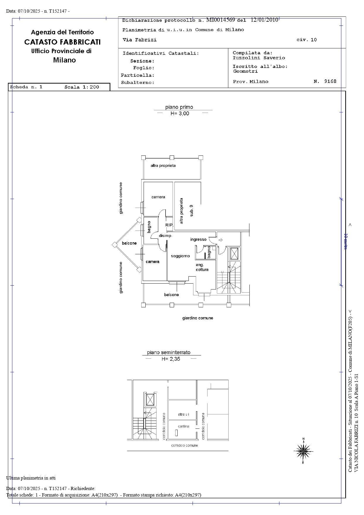 • Piano: Primo, in condominio comunque servito da ascensore.